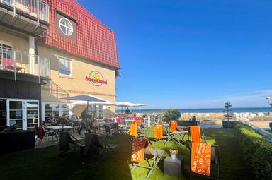 Von unserem Restaurant STEG 1 und unserer Sonnenterrasse -mit direktem Zugang zur Promenade- haben Sie einen unverbauten & atemberaubenden Blick über den Strand auf die Ostsee.