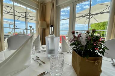 Von unserem Restaurant STEG 1 und unserer Sonnenterrasse -mit direktem Zugang zur Promenade- haben Sie einen unverbauten & atemberaubenden Blick über den Strand auf die Ostsee.