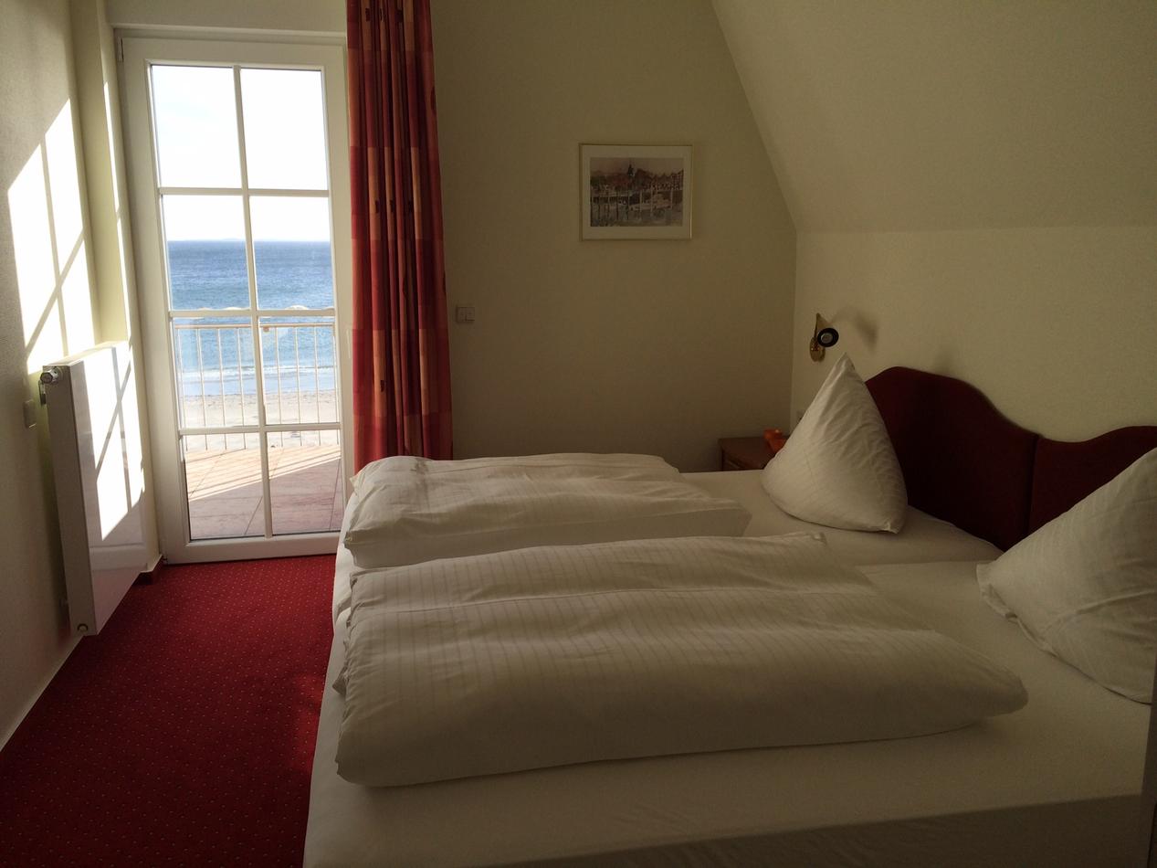 Die Einzelzimmer sind zwischen 25 qm (Landseite) und 35 qm (Seeseite) groß und bestehen aus einem Wohn-Schlafbereich mit komfortablem Boxspringbett (1,20 x 2m) und Bad mit ebenerdiger Regendusche.